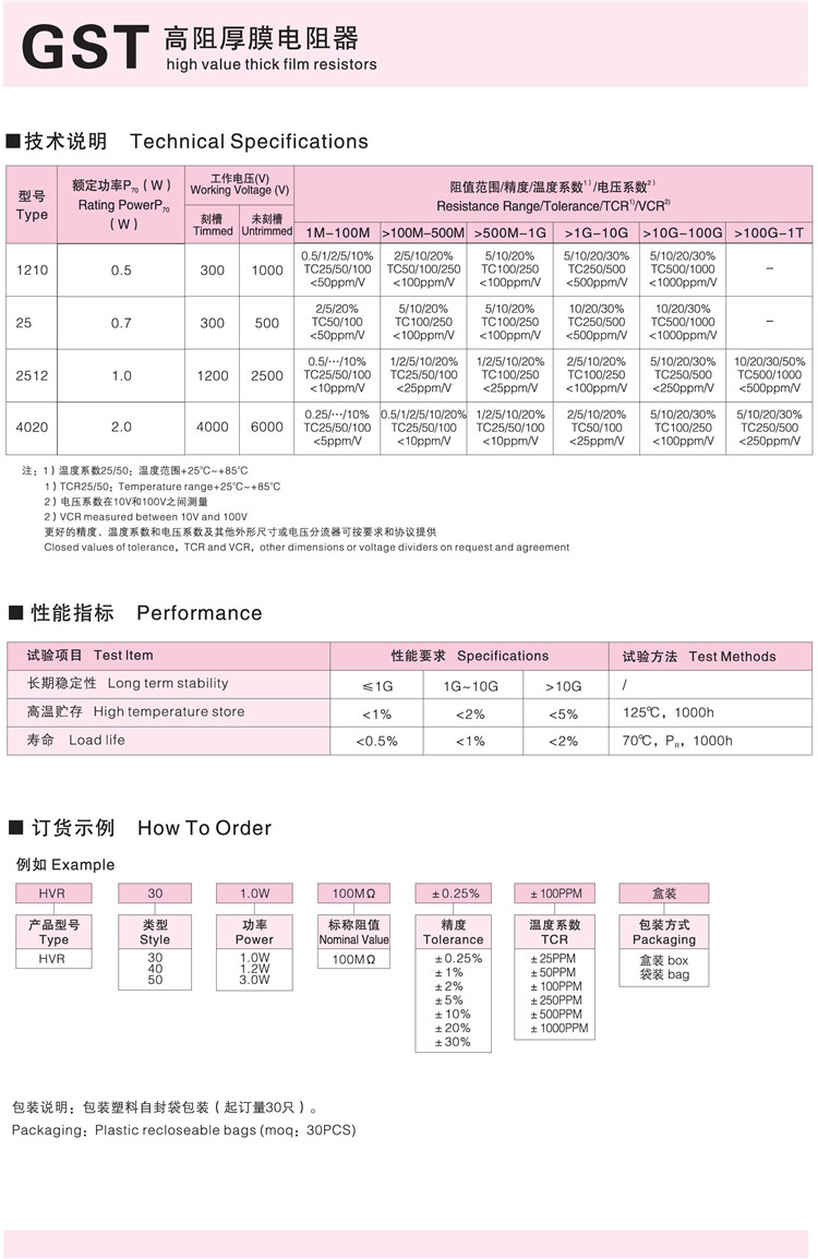 GST型高阻厚膜电阻器