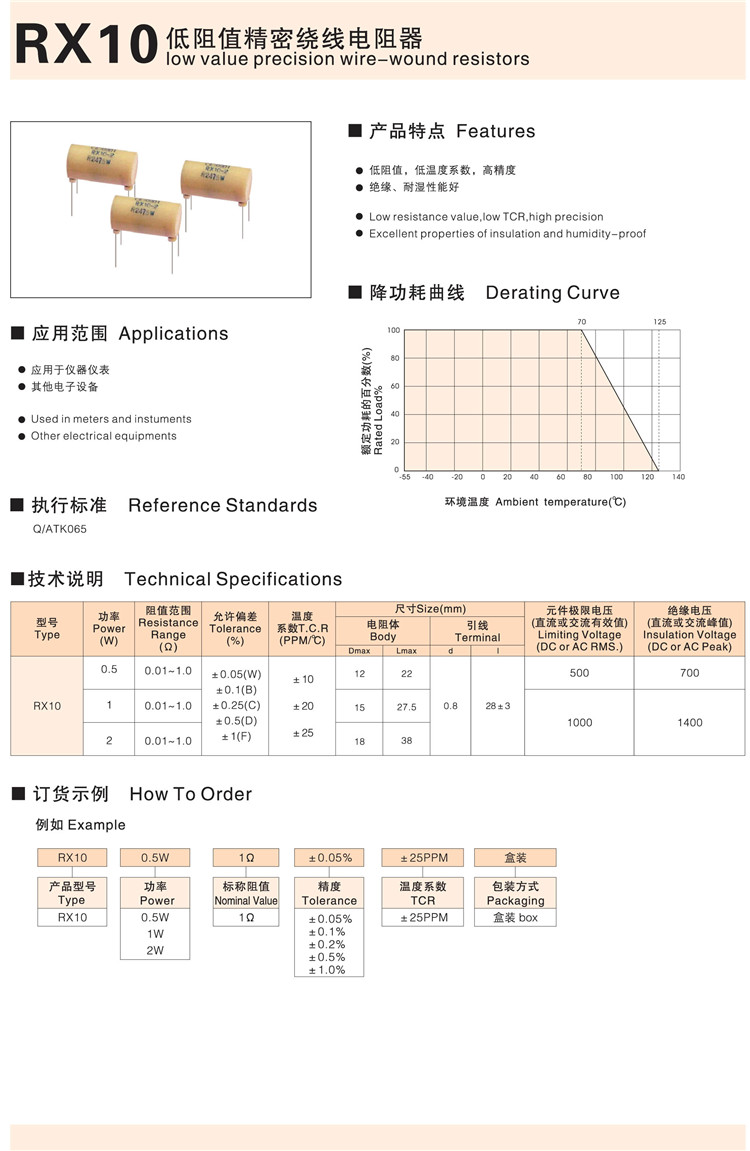 RX10低阻值精密线绕电阻器
