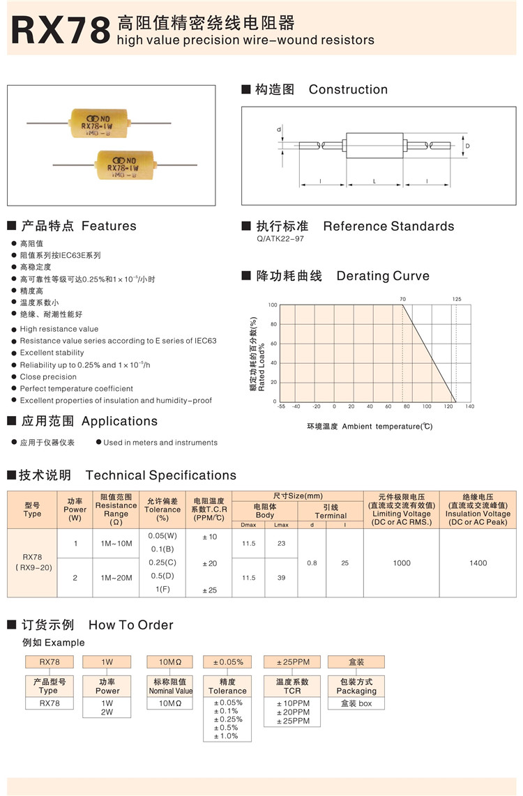 RX78高阻值精密线绕电阻器