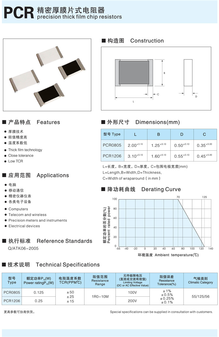 • PCR精密厚膜片式电阻器