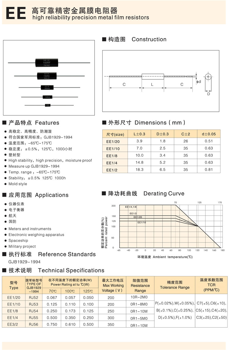 EE 系列高稳定精密金属膜电阻器